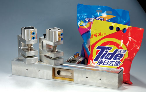 氣動(dòng)打孔機(jī)又稱膠袋打孔機(jī)、沖孔機(jī),是輔助于制袋機(jī)的一種氣動(dòng)打孔模具。